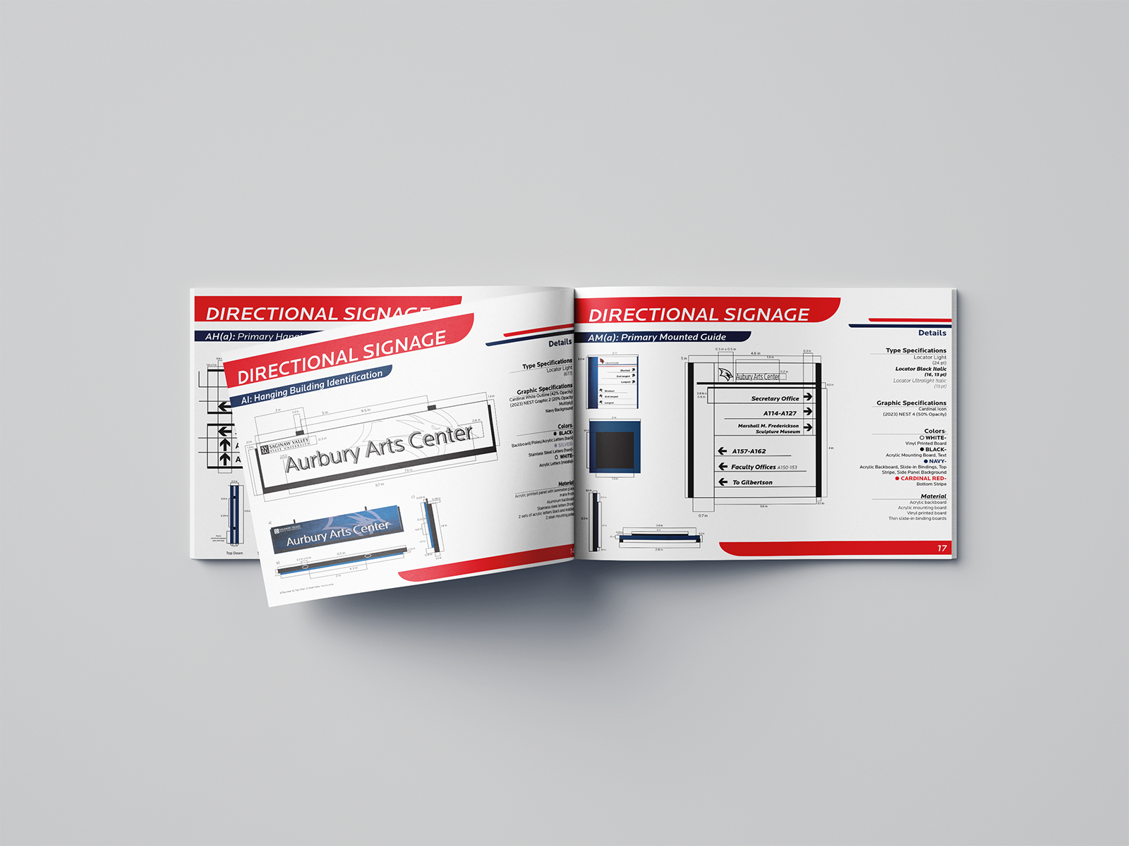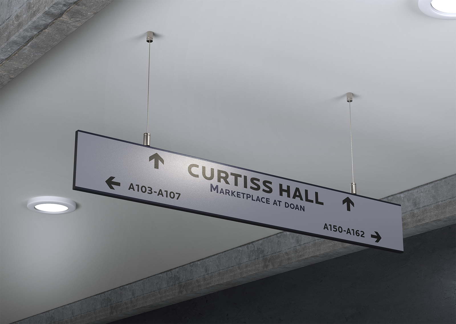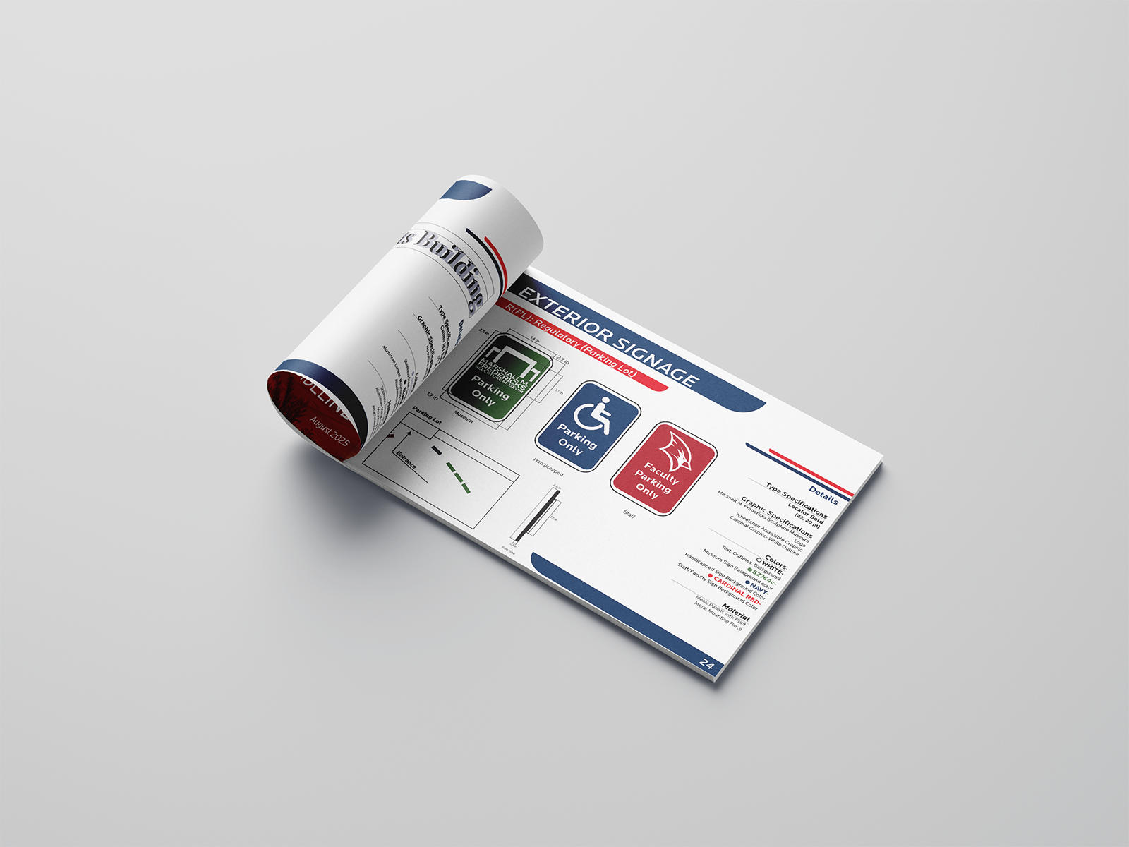 I designed a campus-aligned wayfinding system: a modular family of interior and exterior signs using SVSU typography, a navy–cardinal palette, and clear type scales. Consistent pictograms, color-coded zones, and placement rules improve legibility and orientation at a glance while visually tying the building to newer campus standards.