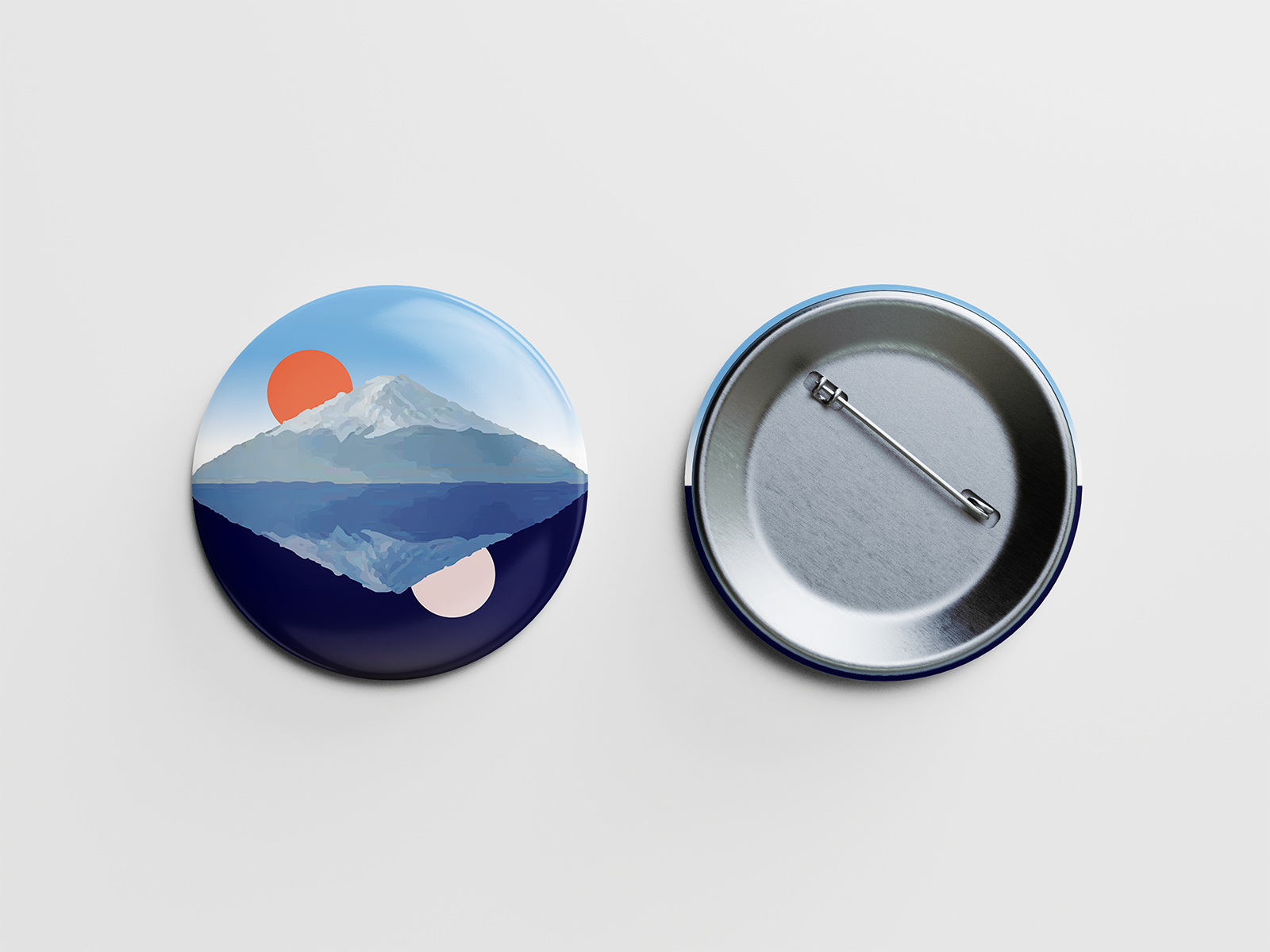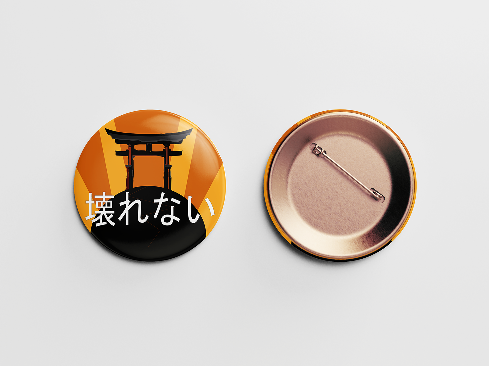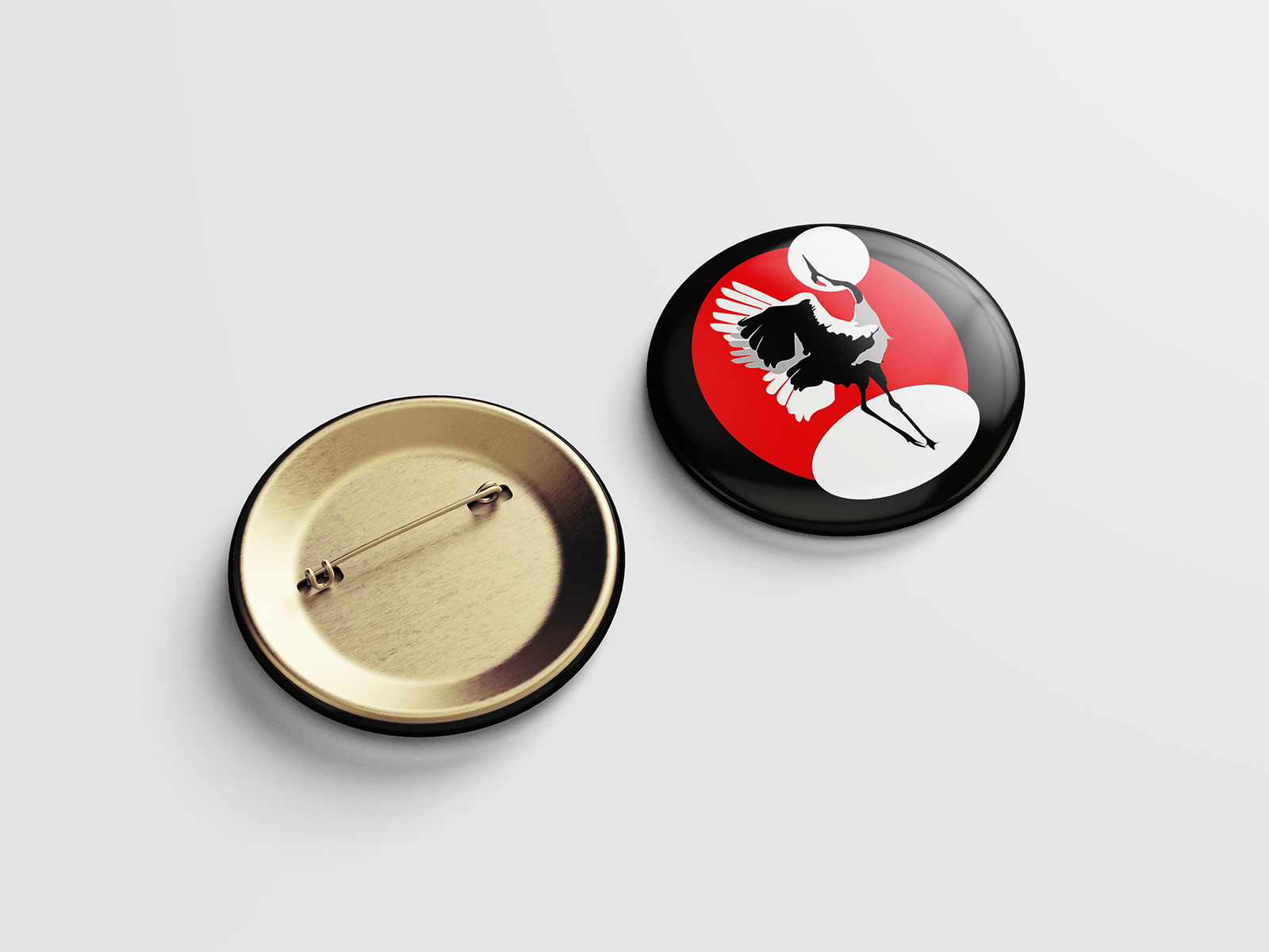 Pin set for SVSU students traveling to Japan. The motifs—Mt. Fuji, red-crowned crane, peace symbol, and a quake-wave pattern—honor local culture in a clean, graphic style.